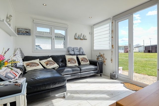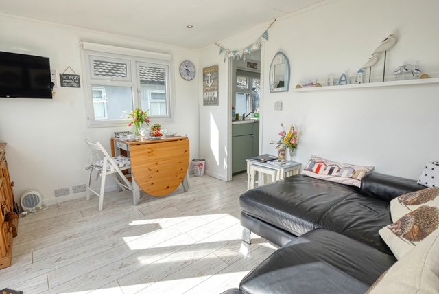 One double bedroom and one single, a shower room with shower cubicle, wc and basin. The kitchen has a built in oven and a counter top 2 ring appliance for cooking, a toaster, kettle etc. There is an integrated dishwasher and fridge which has a small freezer box. A comfortable spacious lounge has a dining area, leather sofa with end chaise, TV, storage, stereo, games for all ages, brochures plus a guest information folder. A patio is situated at the front of the chalet (a real sun trap on warm days)with bench seating overlooking the park green.